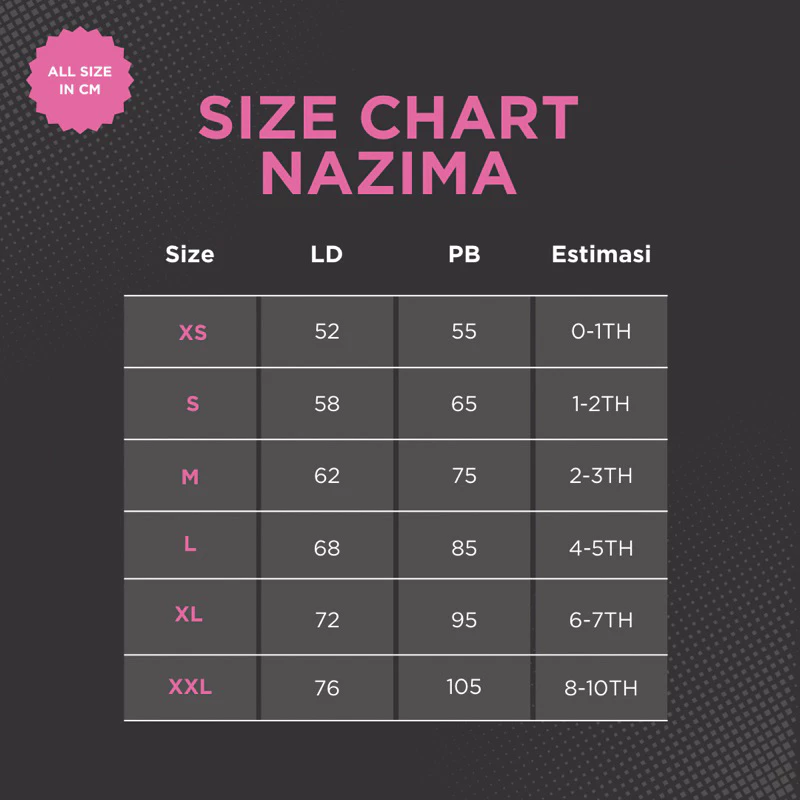 *size chart kita mungkin ada perbedaan 2-3cm karena faktor cutting dan proses jahit